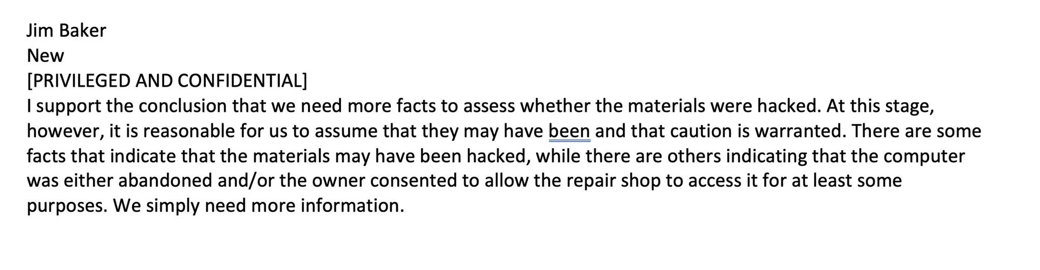 Although several sources recalled hearing about a “general” warning from federal law enforcement that summer about possible foreign hacks, there’s no evidence - that I've seen - of any government involvement in the laptop story. In fact, that might have been the problem…
